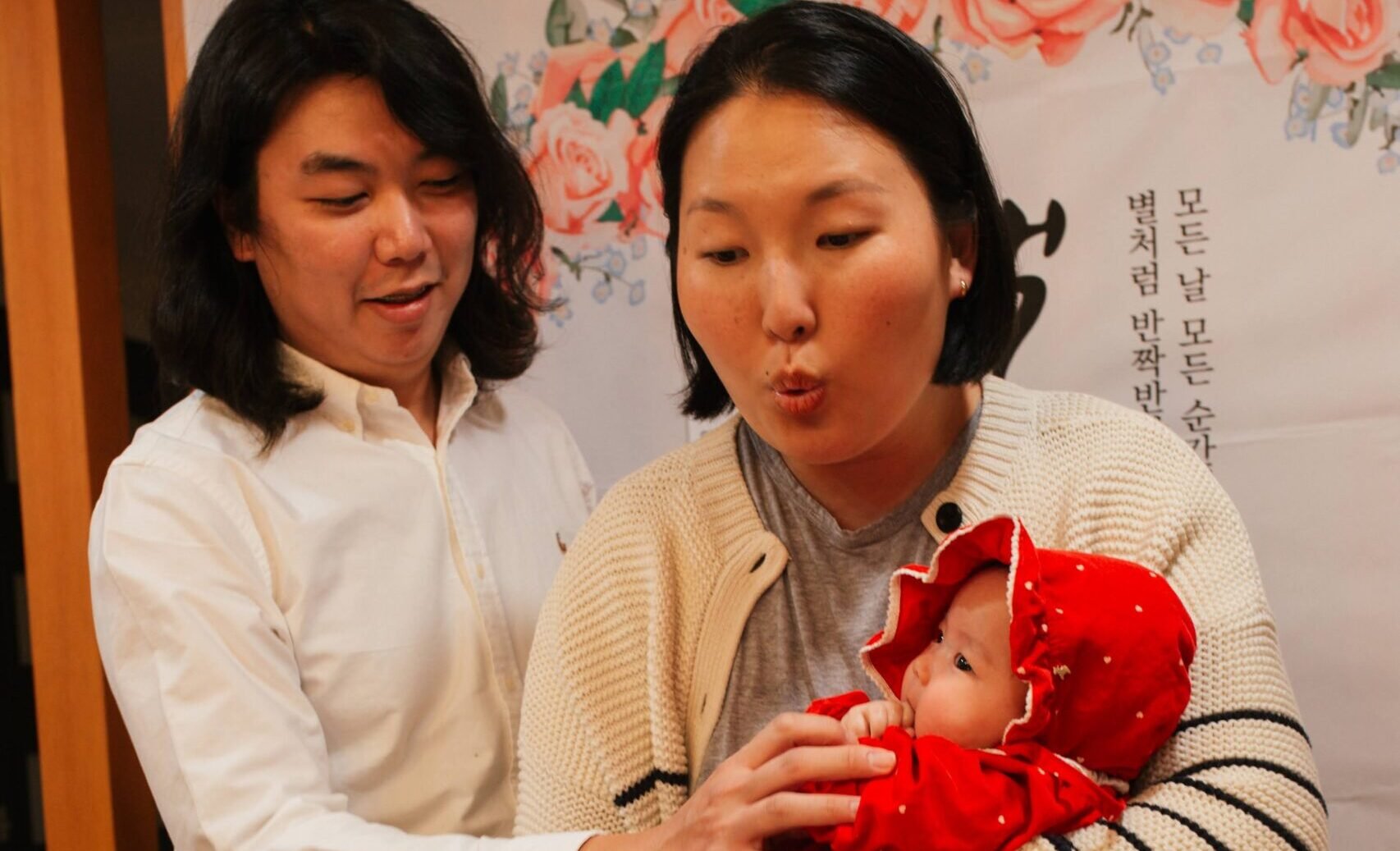 Above: “Turning 100 days is a huge milestone for Korean babies. I was thrilled to celebrate our beloved babe — and also elated for myself that I’d passed the ‘fourth trimester’ mark. Motherhood is simultaneously the most difficult and wonderful journey, and I’m grateful to have a community that celebrates our baby’s milestones as much as her umma and appa.” — Joanne