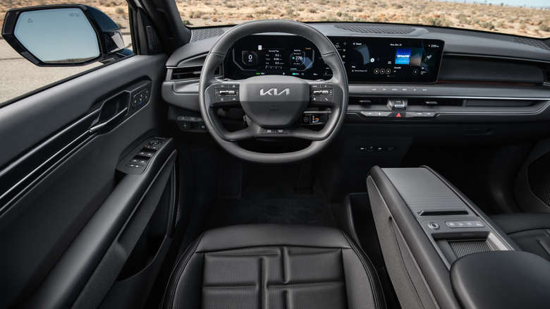 While the Nightfall Edition has the same 379 horsepower as other dual-motor EV9s, it comes standard with a Boost function that ups torque from 443 pound-feet to 516 lb-ft. That means the EV9 Nightfall will go from 0 to 60 mph in 4.5 seconds according to Kia, which is 1.2 seconds quicker than a normal dual-motor EV9 and half a second quicker than one that has the Boost function enabled (you can buy it through the EV9’s app store). 2026 model year EV9s have also switched to the NACS charge port to give easier Tesla Supercharger access.