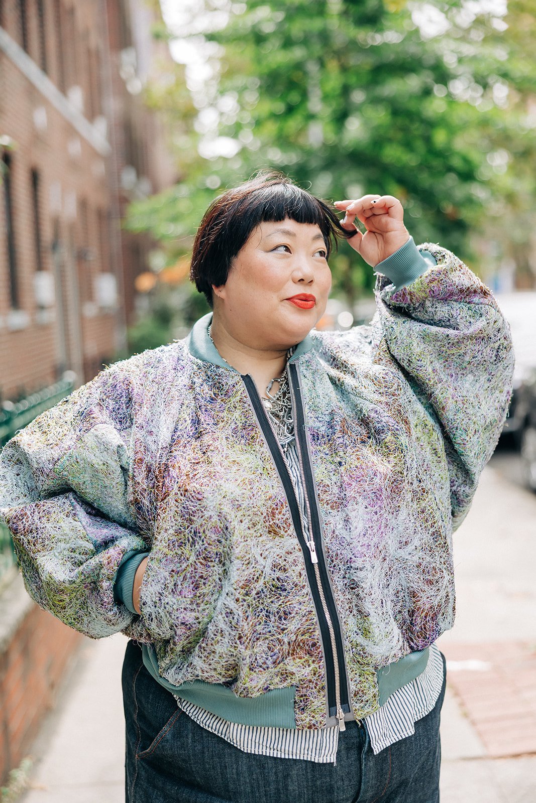“Inspired, I co-founded a plus-size sewing pattern brand, Muna and Broad, and a plus-size luxury fashion brand, a space, in between. This bomber jacket is from my company.”