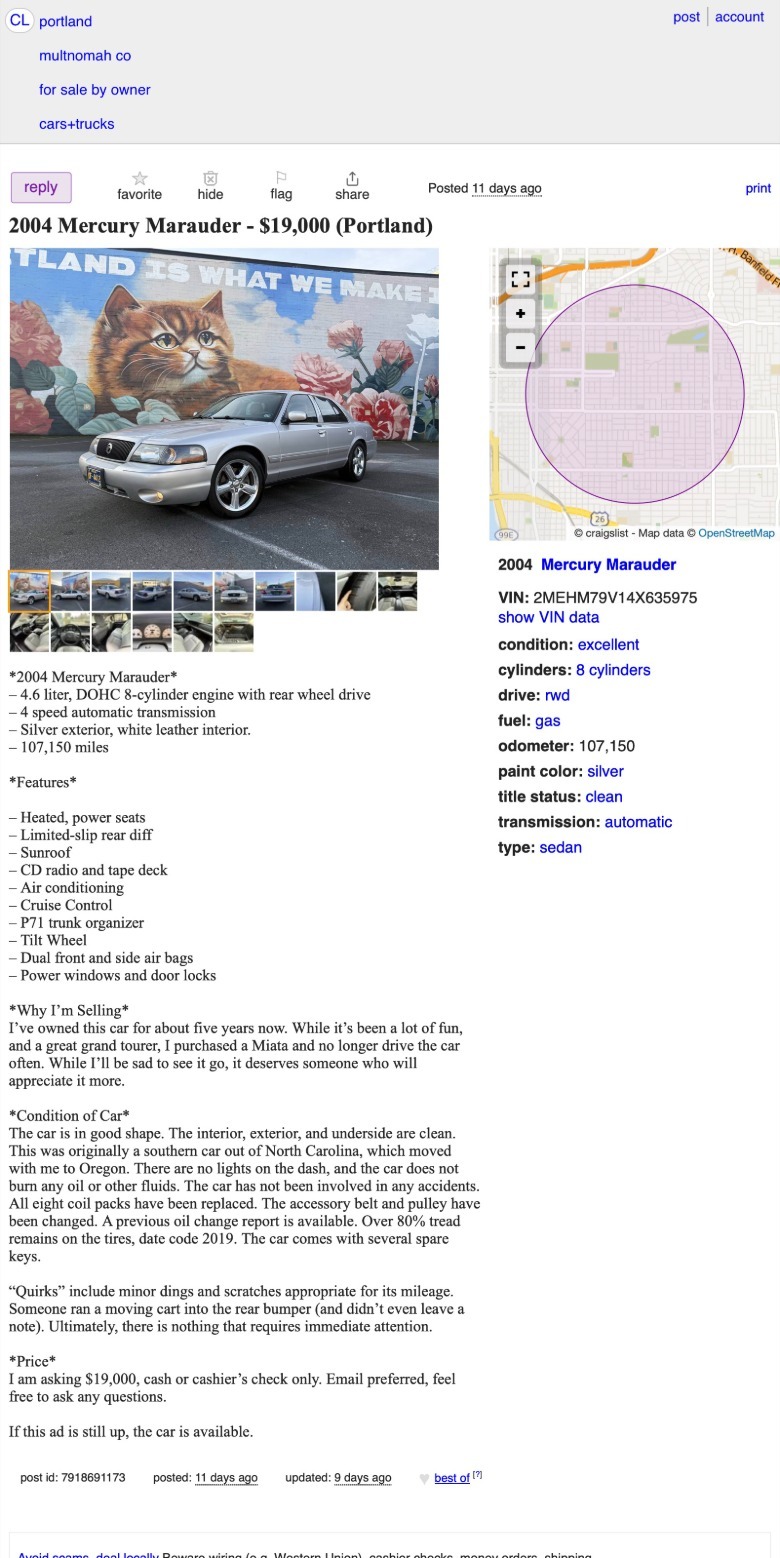 Portland, Oregon, Craigslist, or go here if the ad disappears.