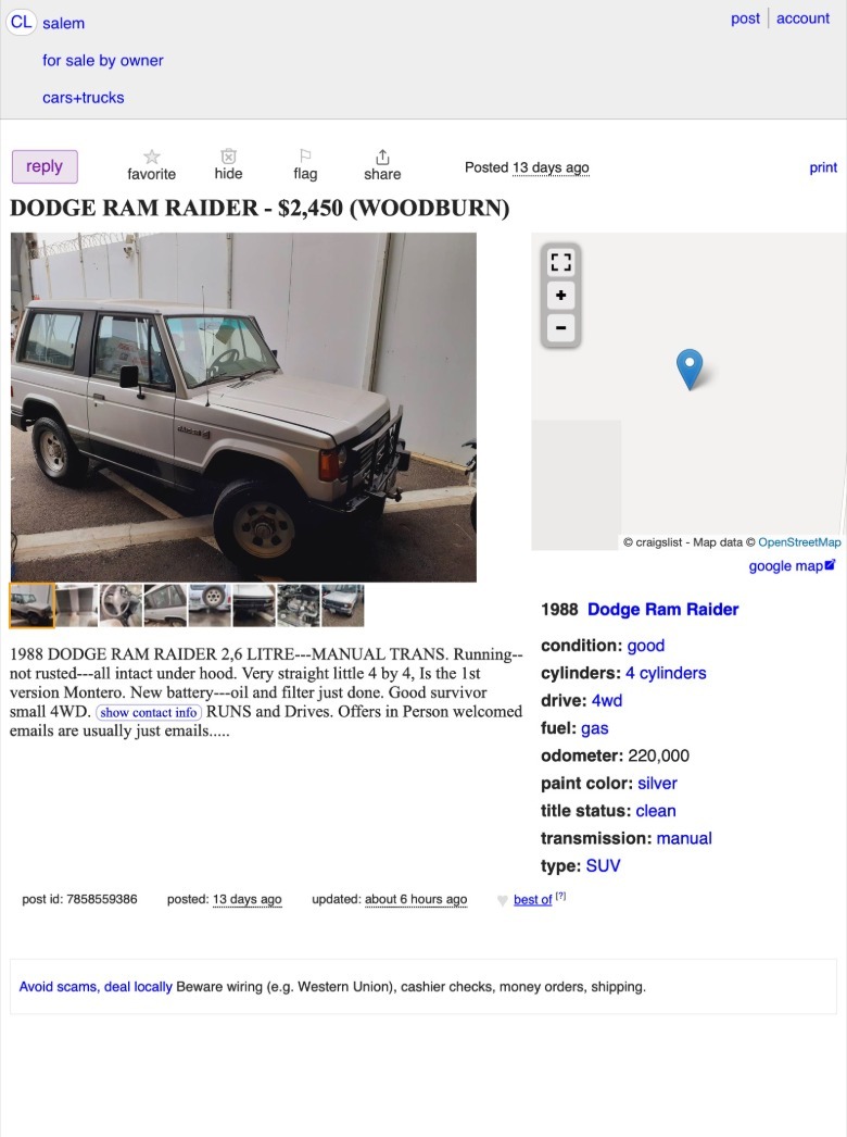 Salem, Oregon, Craigslist, or go here if the ad disappears.