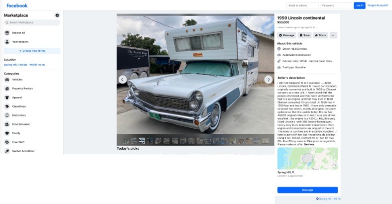 Facebook Marketplace out of Spring Hill, Florida, or go here if the ad disappears.
