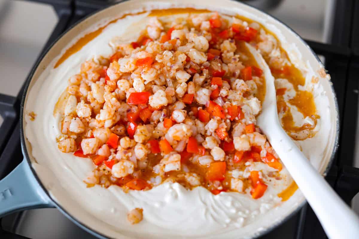 4. Combine: Add the shrimp mixture back to the skillet and stir until evenly incorporated into the cream cheese mixture. Season with salt and ground black pepper to taste.