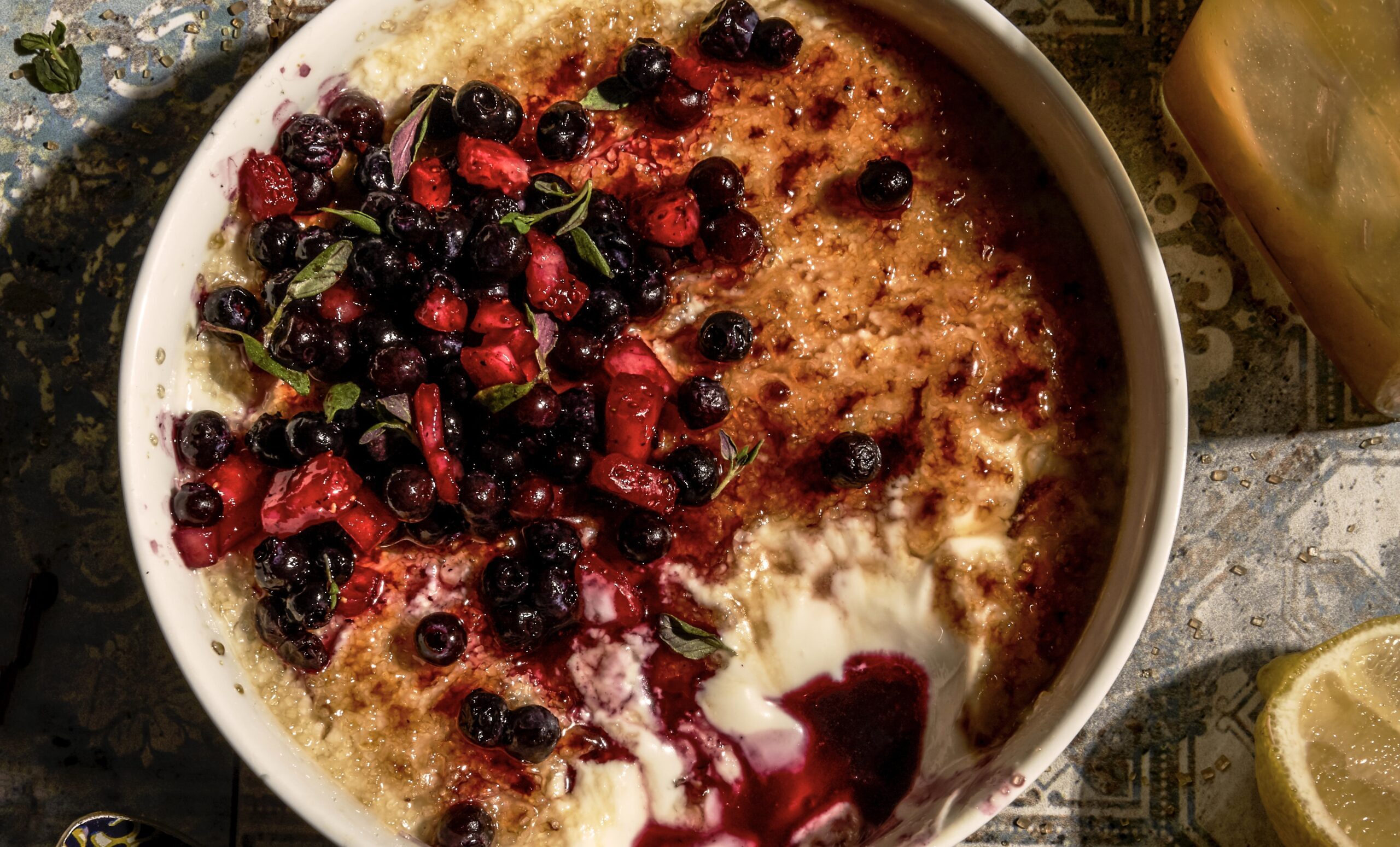 “I love brûléeing the most simple things,” says our friend Jerrelle Guy, whose gorgeous cookbook, We Fancy, comes out this week. “Warm oatmeal, fresh bananas, grapefruit halves, the peanut butter on my peanut-butter toast. And whenever I brûlée my yogurt, it becomes decadent. I think of it as a no-bake crème brûlée.” For breakfast! Or whenever!