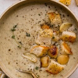 - Garnish: If you really love garlic, top the soup with more roasted garlic cloves. Also, croutons, fresh herbs, and shredded parmesan.