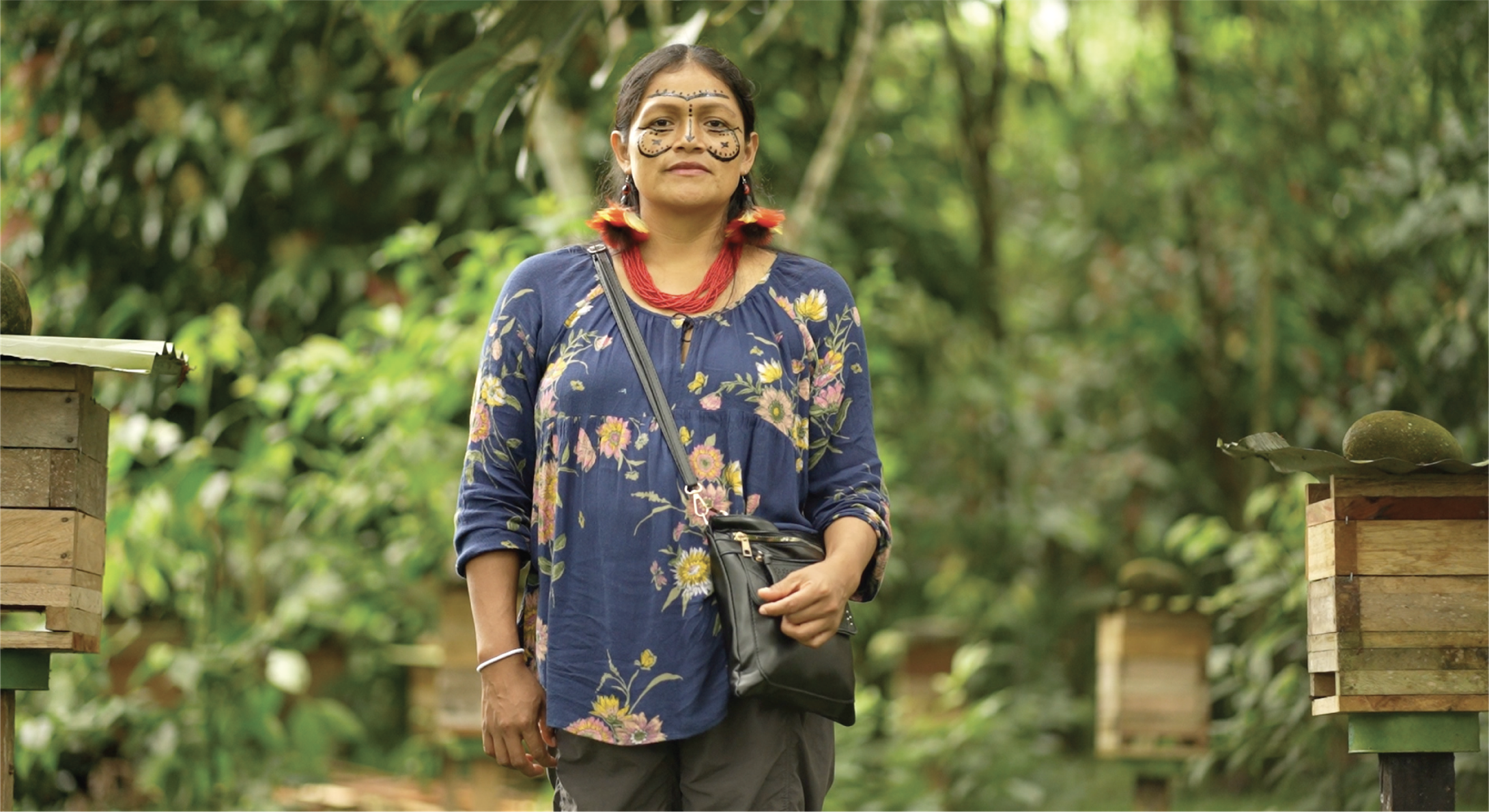 With support from Conservation International’s Amazonia Indigenous Women’s Fellowship — which provides funding for women leading conservation in their territories — she is sharing her beekeeping experience with women from her own community and the network of Indigenous fellows.