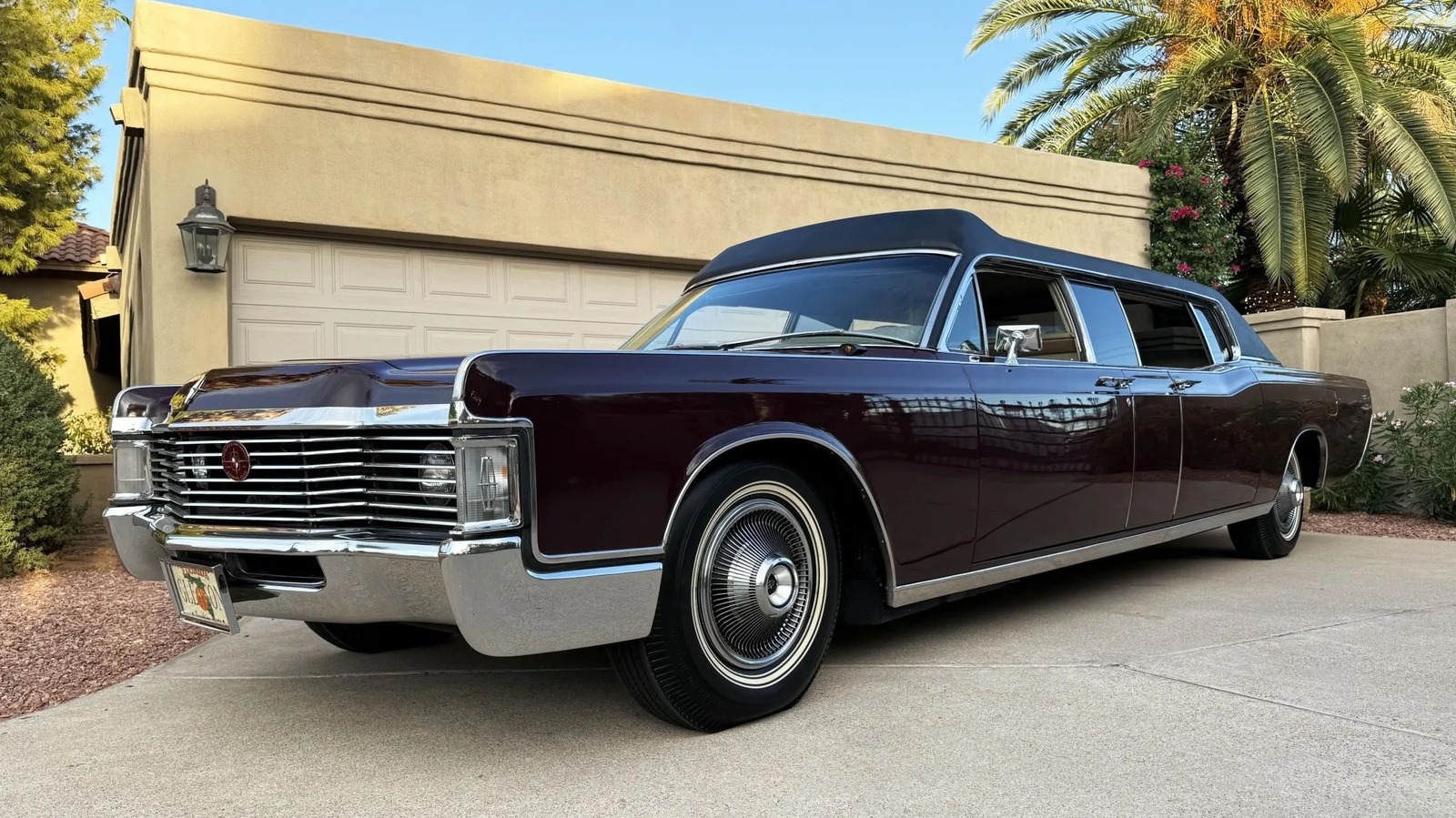 Carron and Company of Inkster, Michigan, customized this car for Gleason in the early 1970s. Despite some resemblance, this is not the Jackie Gleason limo that appeared in an episode of “Pawn Stars” (that was a 1978 model). A custom grill partially covers the headlights, a styling cue introduced in the early 1970s models that were just hitting the streets when this car was converted. The most notable alteration is that the car has been stretched between the front and rear doors. Those suicide rear doors may seem like another custom feature, but they were standard on the Continentals of the 1960s, and this was the last year they were available.
