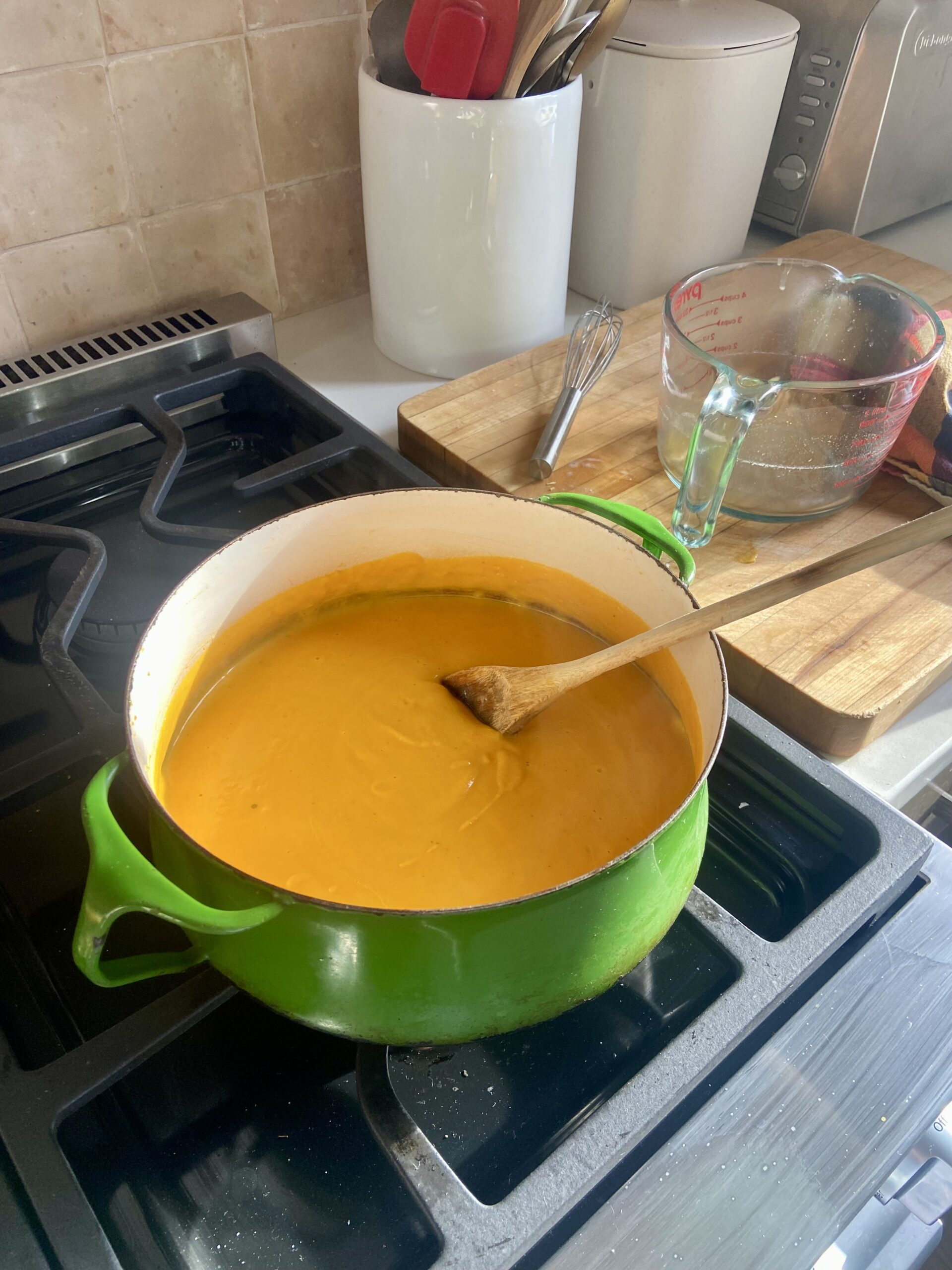 Since I know Cup of Jo readers love specifics, I asked our beloved Jenny Rosenstrach if she could make the carrot soup and write it out with more detail, using ingredients easily found in the U.S. “Lulu’s carrot soup was delicious and could not have been easier,” she told me afterward. “It’s very satisfying to think that if you have a typically stocked pantry, you can just pick up a bag of carrots and have a delicious wholesome dinner on the table less than an hour later.”