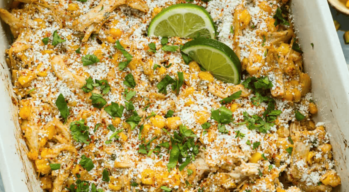 HomeFoodMexican Street Corn Chicken Casserole with Eloté Flavors