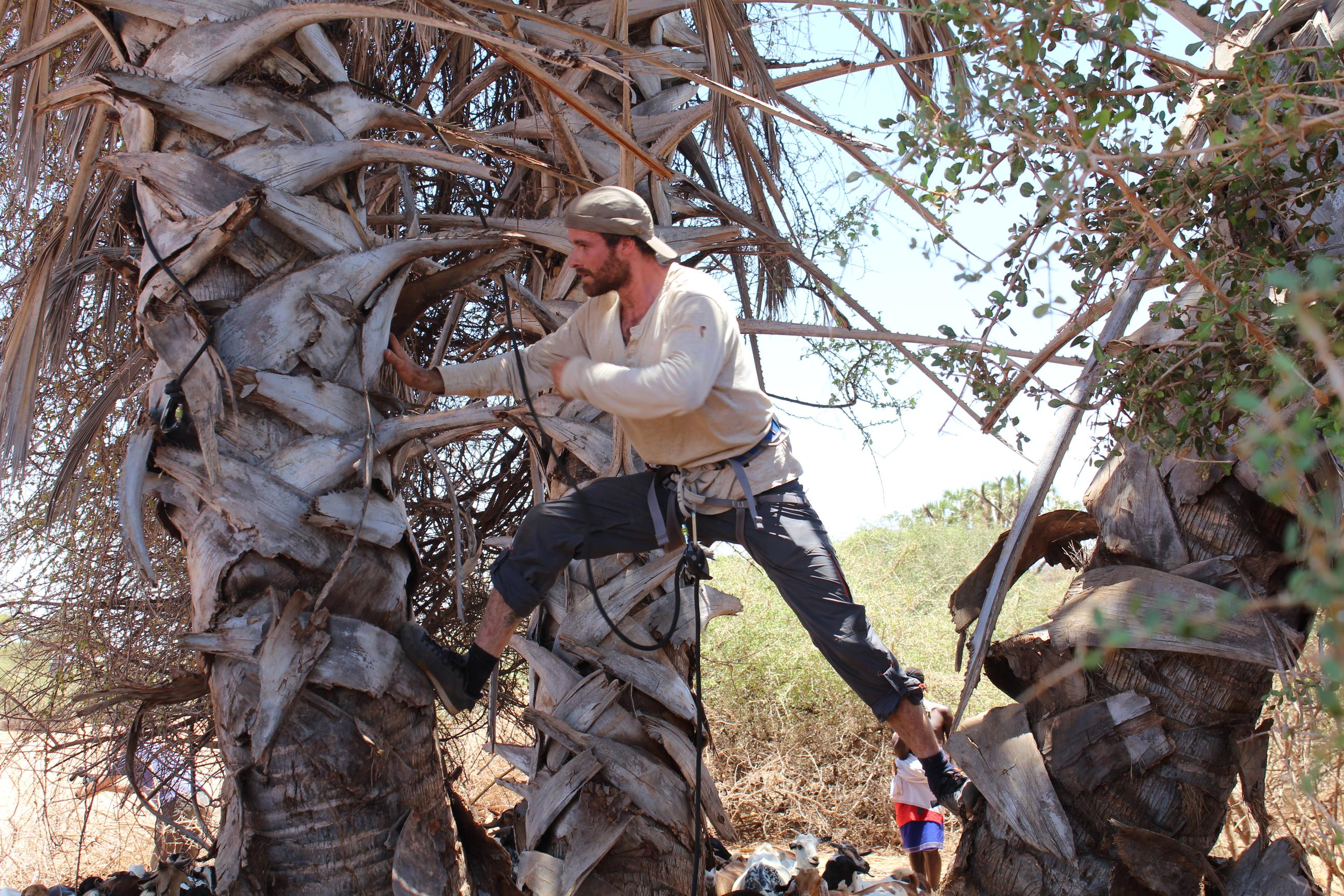 Crew member Waldo Etherington, an industry leading rigger and world-renowned tree climber, setting up a shot. (© Conservation International/photo by Melina Formisano)