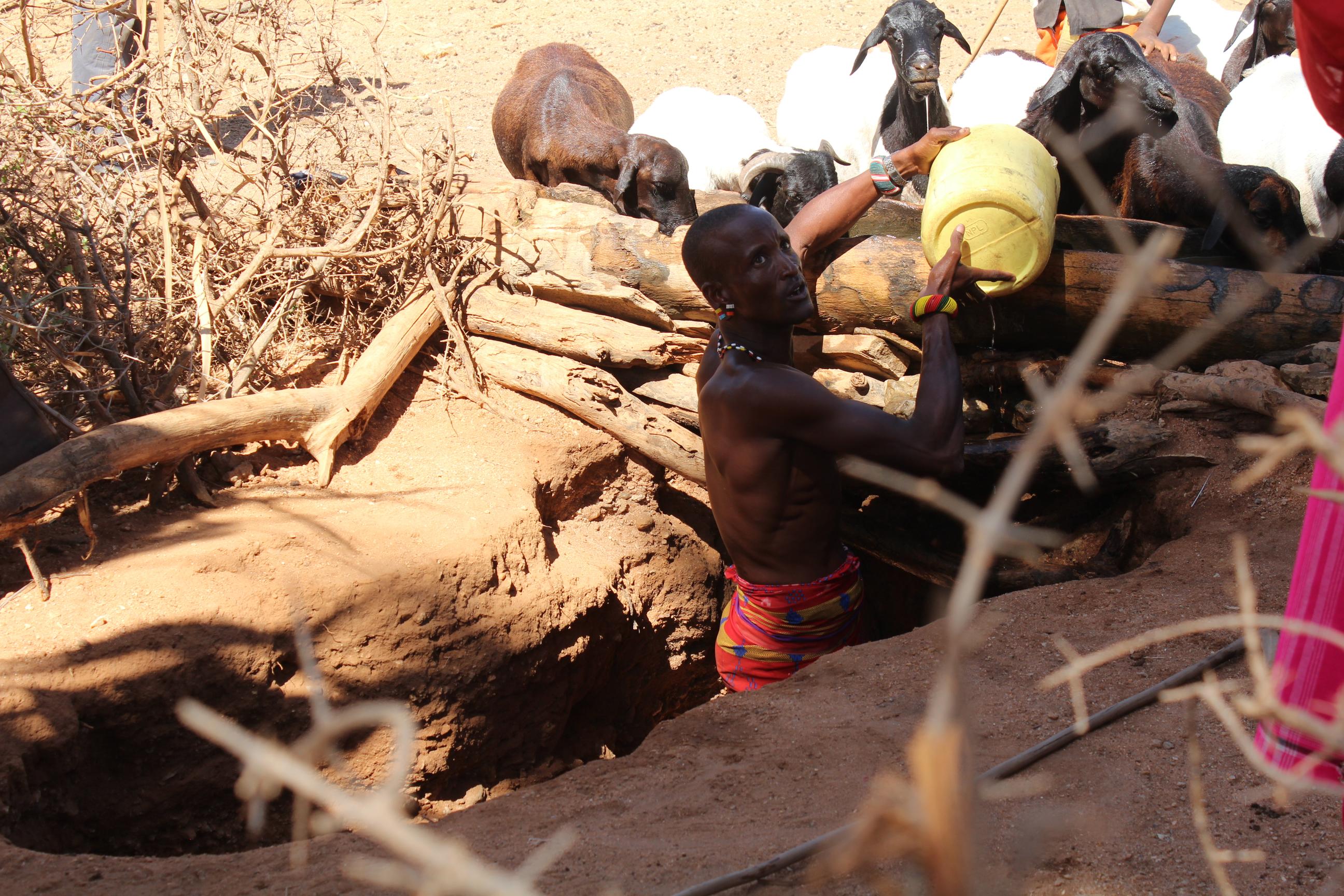 A Samburu man in a “singing well” in Kenya. (© Conservation International/photo by Melina Formisano)