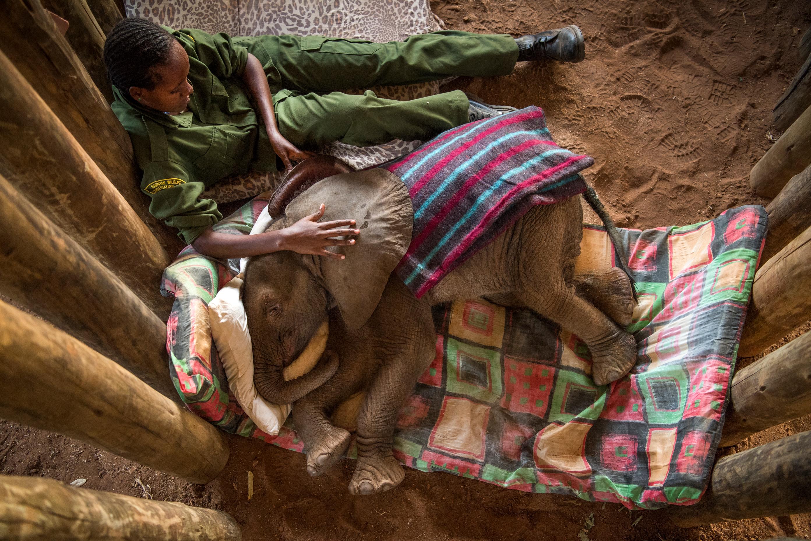 Rescued elephants at Reteti Elephant Sanctuary are looked after by local keepers. (© Ami Vitale)