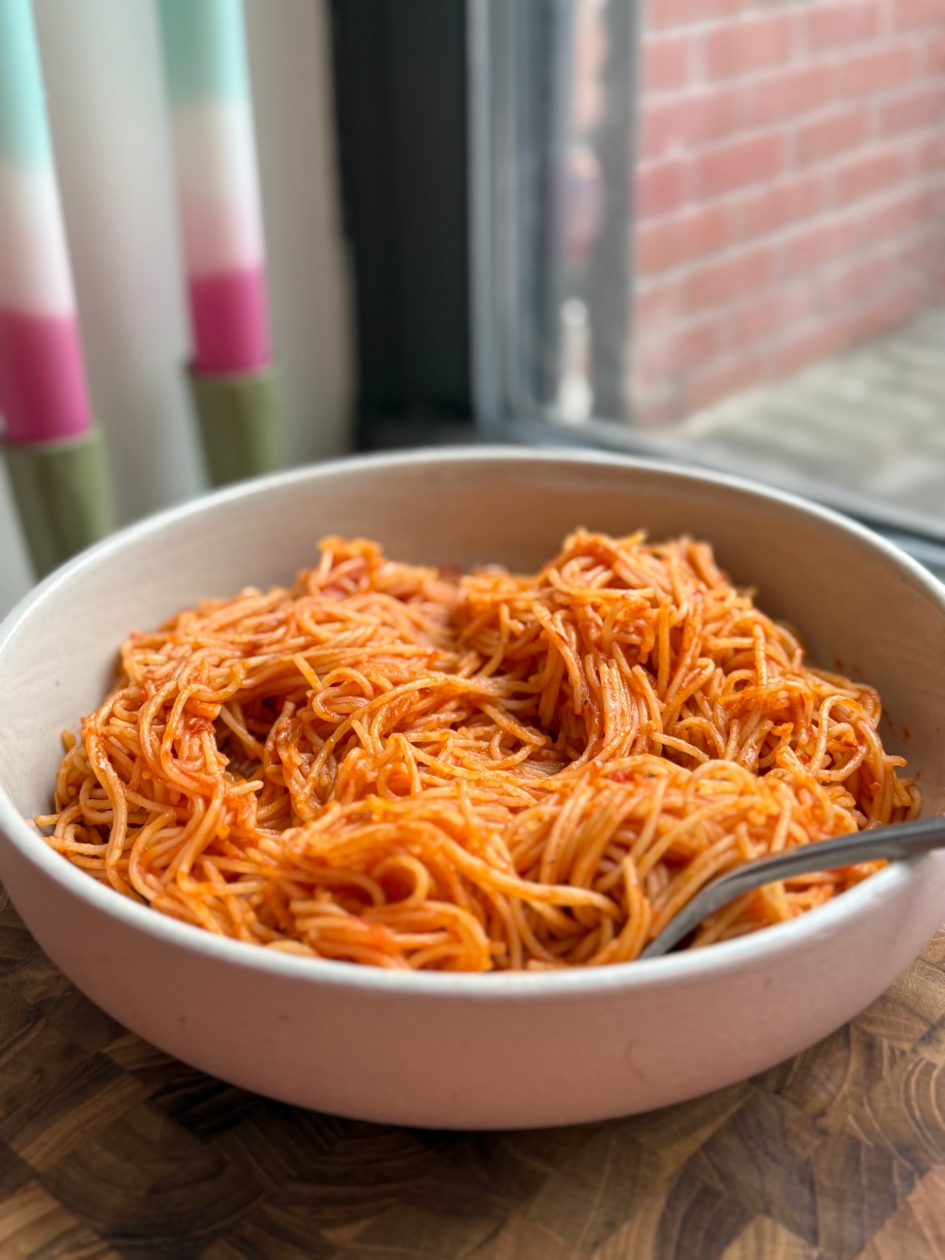 The recipe itself is simple — almost suspiciously so. It’s garlic, crushed tomatoes, olive oil and salt. Yet it took me years of practice and pestering phone calls to get it right. I didn’t understand how my dad could turn such basic ingredients into a sauce that looked like nothing on top of spaghetti yet exploded with such deep flavor — it seemed like a magic trick.