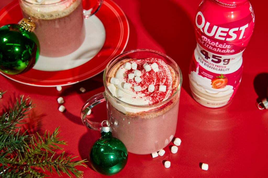 SUCCUMB TO QUESTIFIED RED VELVET HOT CHOCOLATE. Those cozy holiday drinks from your local megachain may taste like joy—but nutritionally they’re running on vibes alone. This Red Velvet Hot Chocolate hits different. With its dramatic, ruby-red color, it looks as delicious as any other festive treat—but beneath the cocoa is a Quest Strawberry Protein Milkshake with a protein-forward boost so powerful those seasonal sugar bombs don’t even come close.