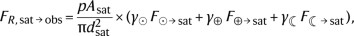 $${F}_{{\rm{sat}}}=\,{F}_{{\rm{R}},{\rm{sat}}\to {\rm{obs}}}+{F}_{{\rm{T}},{\rm{sat}}\to {\rm{obs}}}+\,{F}_{{\rm{T}},\oplus \to {\rm{sat}}\to {\rm{obs}}}.$$