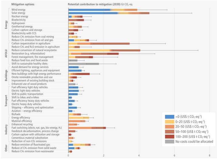 One graph in the report lists 43 different options for cutting greenhouse-gas emissions by 2030 — options in the energy sector, transport, land use, industry and more. If all the actions are taken to the extent possible, the report indicates, we would reverse the climate crisis — and likely stabilize well below 2C (3.7F) of warming, beyond which life on Earth starts to get ugly.