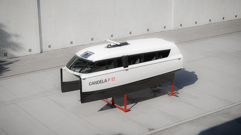 You’d be forgiven if you assume that a 40-foot, 30-passenger ferry would require a tremendous battery, but that’s another challenge that’s solved by the P-12’s hydrofoils. When in motion, the hull of the P-12 rises up out of the water, where it’s held up by five narrow struts that connect the hull to the hydrofoils and propellers that stay below the surface. Those propellers are powered by two Candela C-Pod motors that produce a combined peak power output of 429 horsepower. Once the hull is out of the water, the C-Pods don’t need much power to keep the ship moving thanks to the minimal drag caused by the struts.