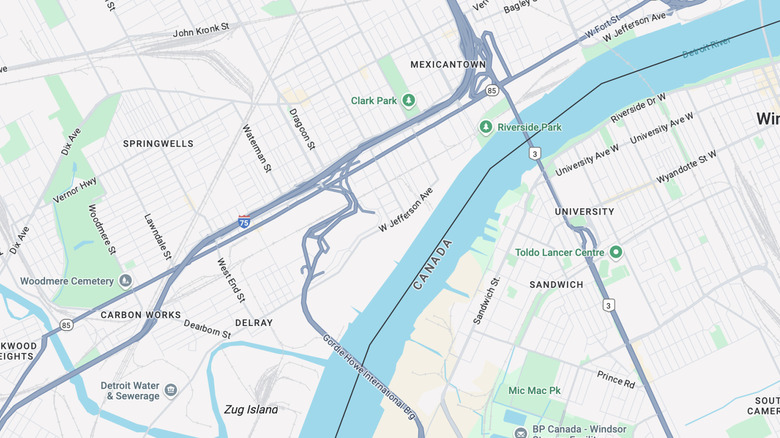 Here’s the thing; it’s not always super easy to know where you’re going in the tangled mess of roadways and onramps that make up the entrances to these bridges. The Gordie Howe Bridge (at the bottom of the image) is a little clearer than the Ambassador Bridge, but it’s still a confusing mash of streets. And before you know it, you’re on a bridge with no passport and no fare to get across. On at least the Ambassador Bridge entrance, there’s nowhere to turn around, so you have to cross once you are in the stream of traffic. This results in irate customs officials and a whole lot of angry radioing back and forth. Ask me how I know.
