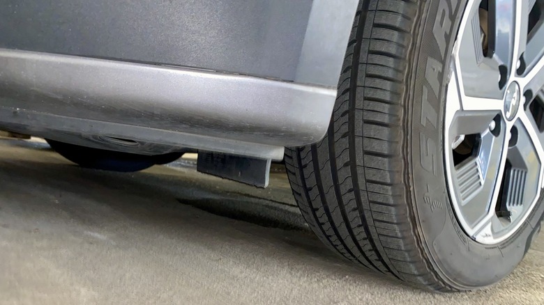 When these flaps are behind the wheels, they’re likely there to prevent the tires from flicking up road debris like mud or rocks. When they’re in front of the tires, it’s to maximize aerodynamic efficiency. The more aerodynamically efficient a car is, the less fuel, whether gas or electricity, it takes to move the car. Aerodynamically optimized designs are a good thing; they increase efficiency, decrease wind noise at speeds, and allow for vehicles to achieve higher maximum speeds without losing control.Â