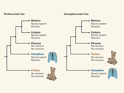 For more than a century, most scientists placed the sponge lineage at the base of the animal tree, mainly because modern-day sponges lack many of the features that define other animals, including specialized tissues such as muscle, nerve and gut, which were thought to have evolved later. “If the sponge tree were right, everything would just rather fall into place,” says Telford. But when scientists turned to rapid genome sequencing to confirm this seemingly settled picture, it fell apart.
